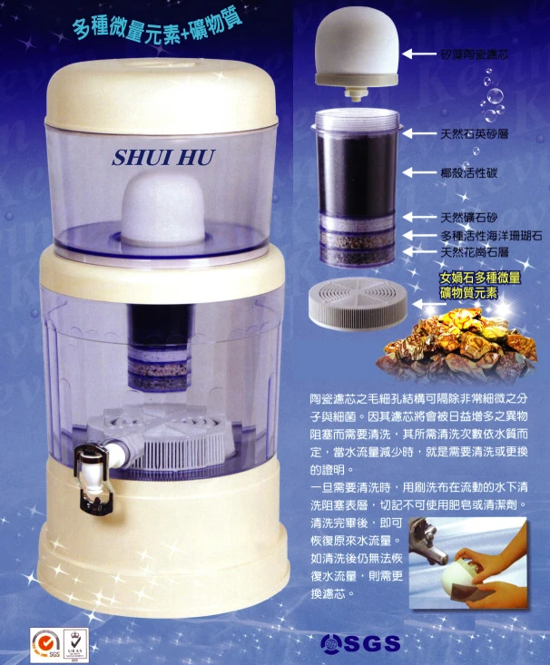 2.多層礦泉濾心—仿天然礦泉自然層天然石英砂層、椰殼活性碳、天然礦石砂、多種活性海洋珊瑚石、天然花崗石層層過濾,達到甘甜.好喝的健康飲水品質。